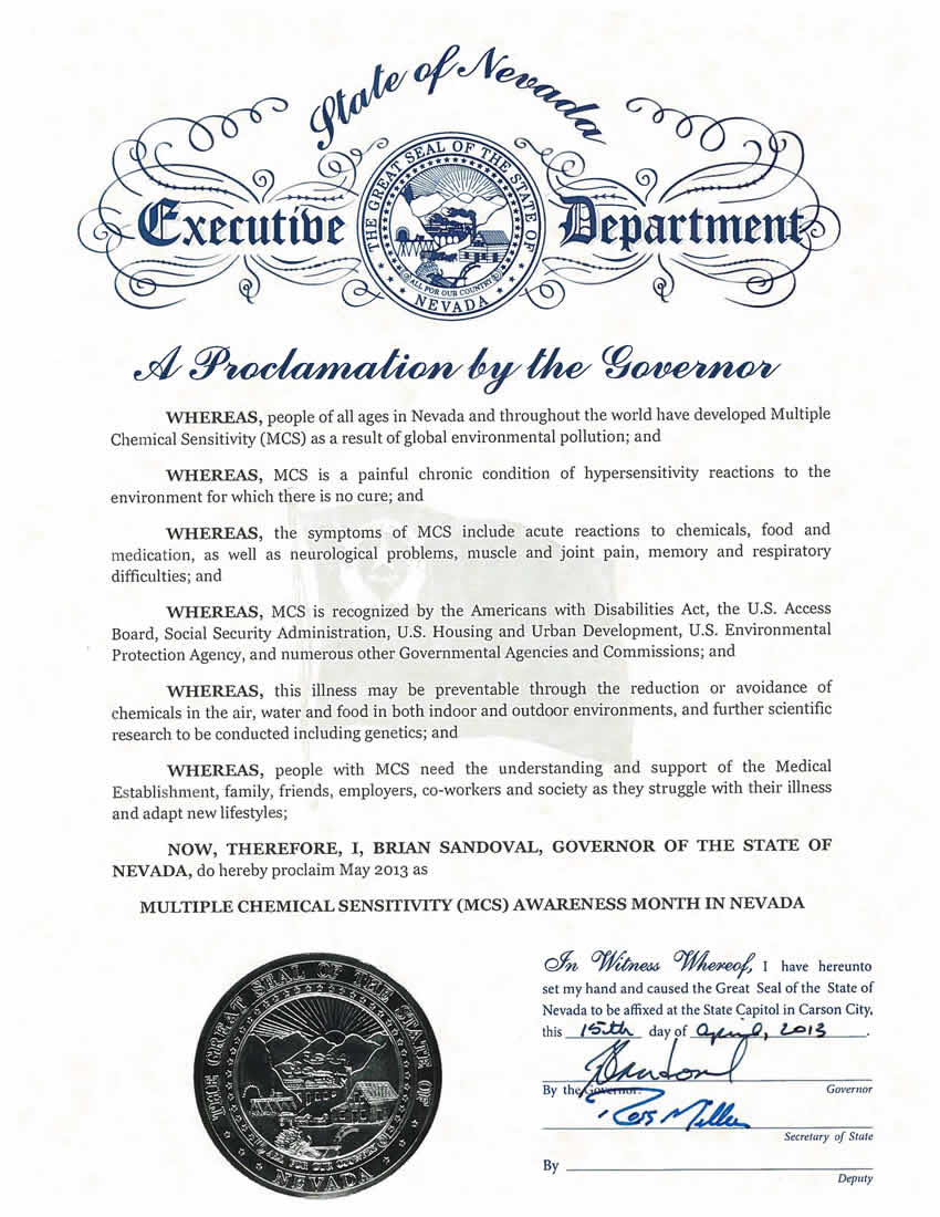 Nevada Governor Proclaims May 2013 as MCS Awareness Month!